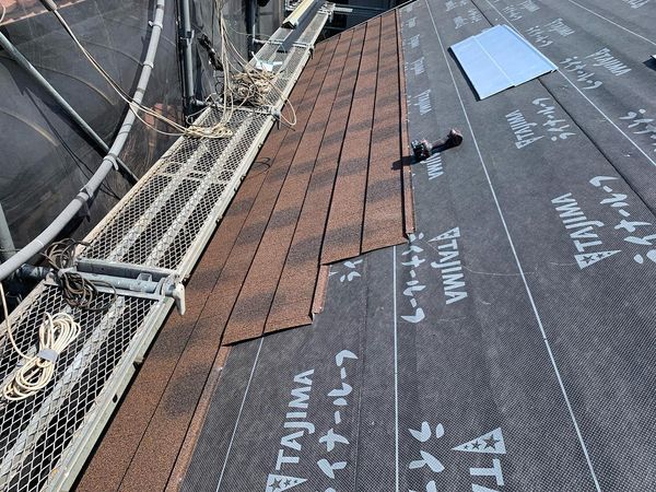 太陽光脱着、屋根カバー工事の現場になります。