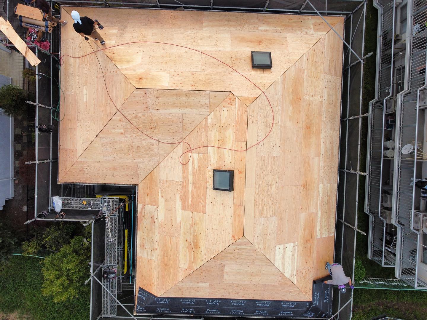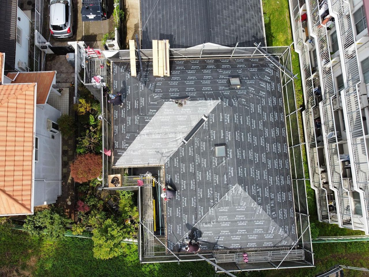 自慢の自社職人6名で入って1日でルーフィングまで終了しました。