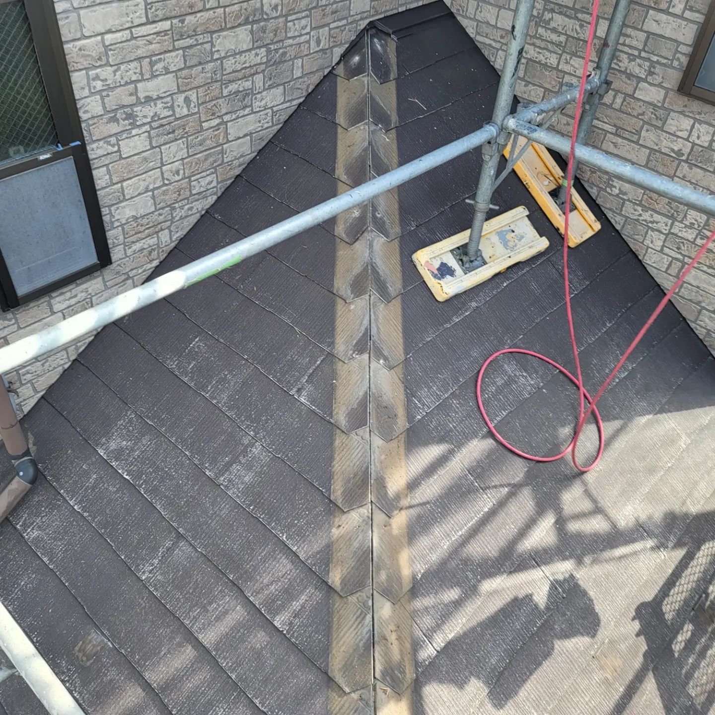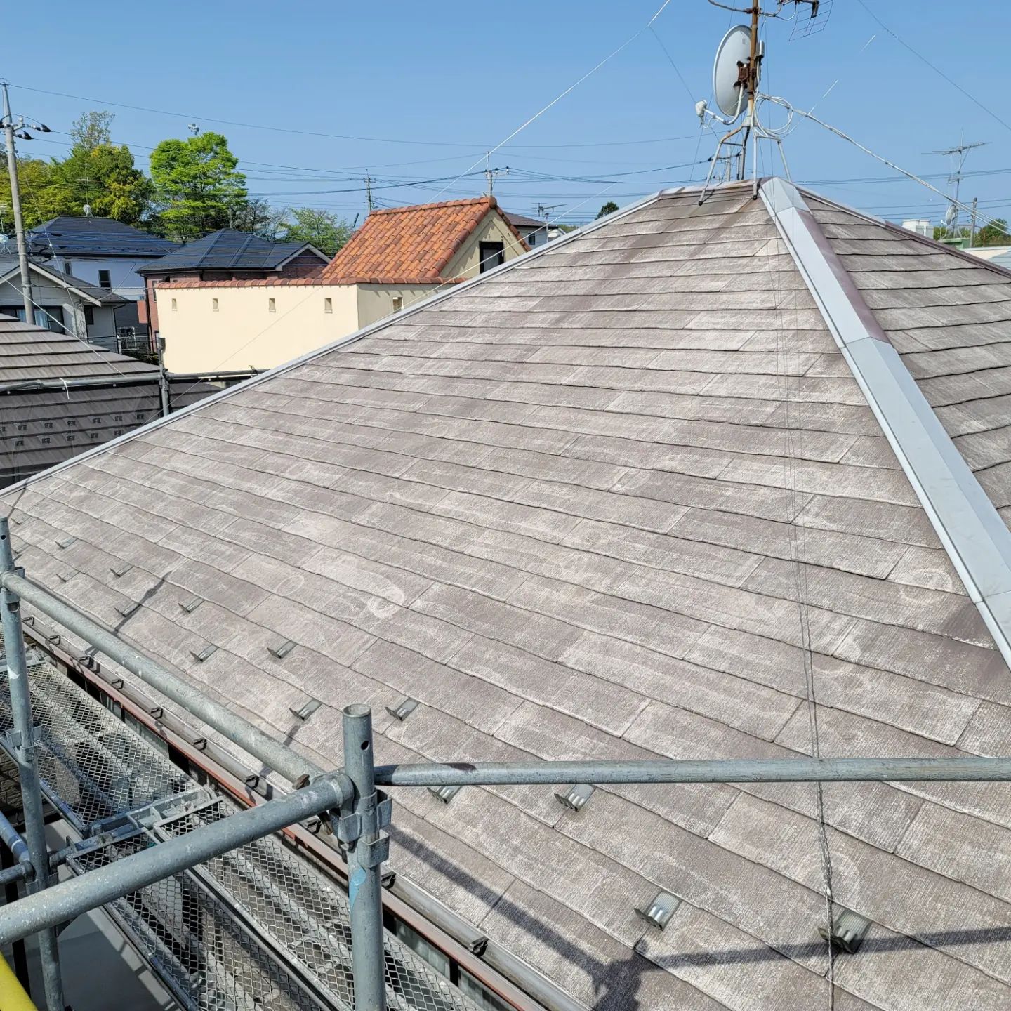 町田市にて屋根葺き替え・塗装工事の現場に入りました。