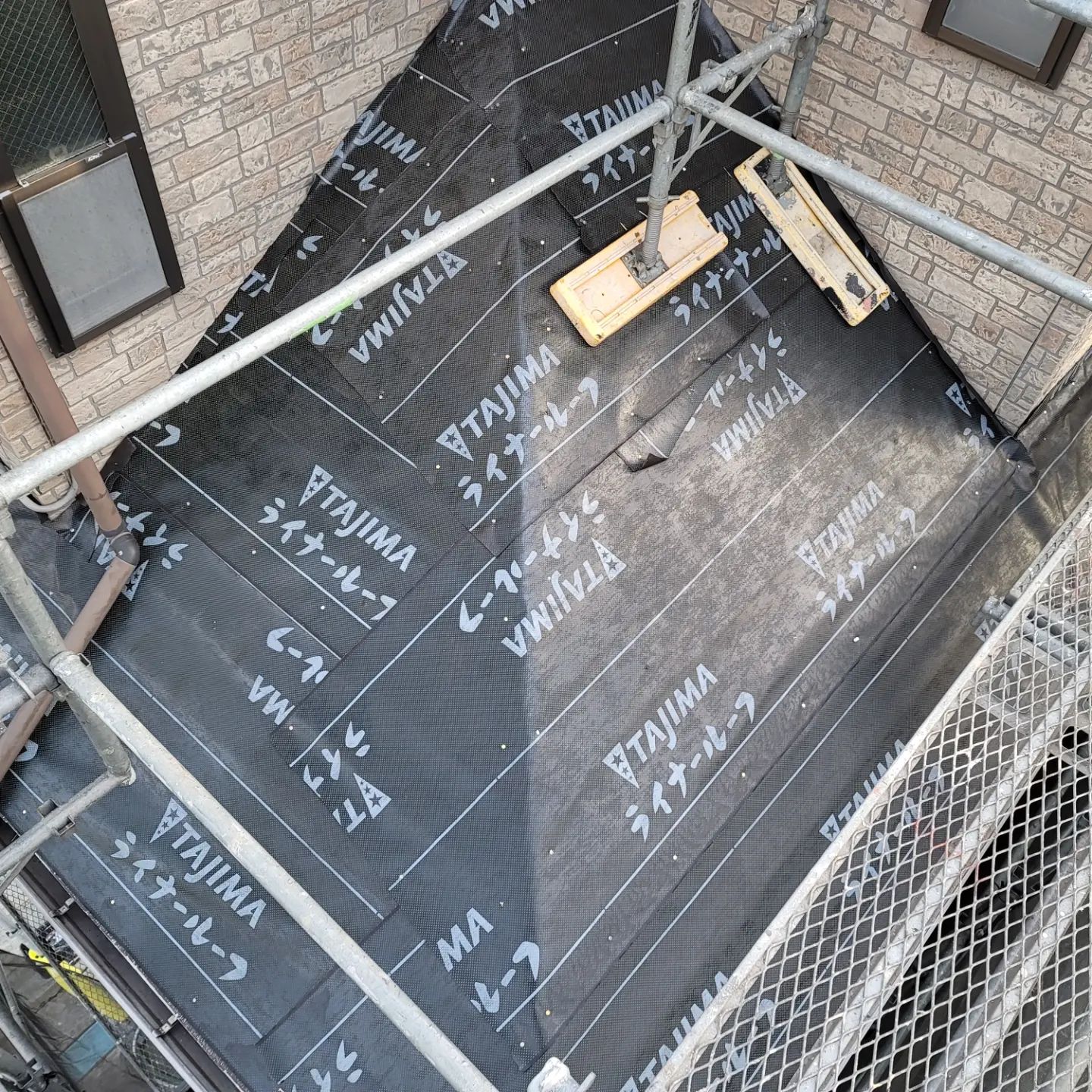 大屋根、下屋根ともに既存の棟板金などを撤去し、ルーフィングの増し張り、軒先スターター板金を取り付け明日から屋根材本体を取り付けていきます。