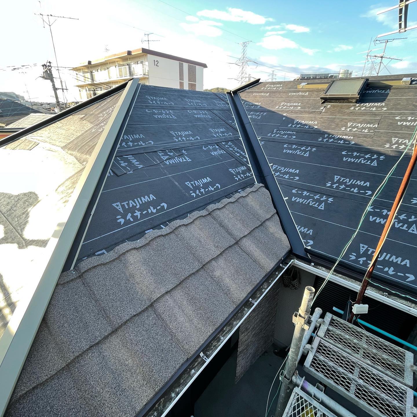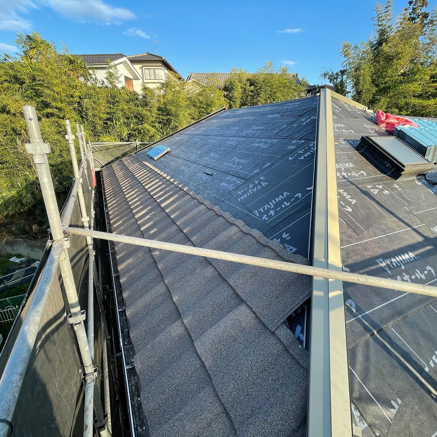 屋根葺き替え町田市南成瀬 屋根葺き替え工事② 2023.04.18 町田市南成瀬 N様邸にて屋根葺き替え工事で今回はは大屋根の下地板金取付を行い、ディーズルーフィングのローマン(モスブラウン色)の本体を少し貼りました。 明日は天気次第で作業していく予定です。 いい感じです! Post Share Line note 町田市南成瀬 屋根葺き替え工事着工①前の記事 多摩市鶴牧 カバー工法② エコグラーニ次の記事