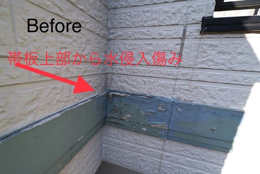 帯板上部も雨水が侵入しないようしっかりコーキング処理しています。