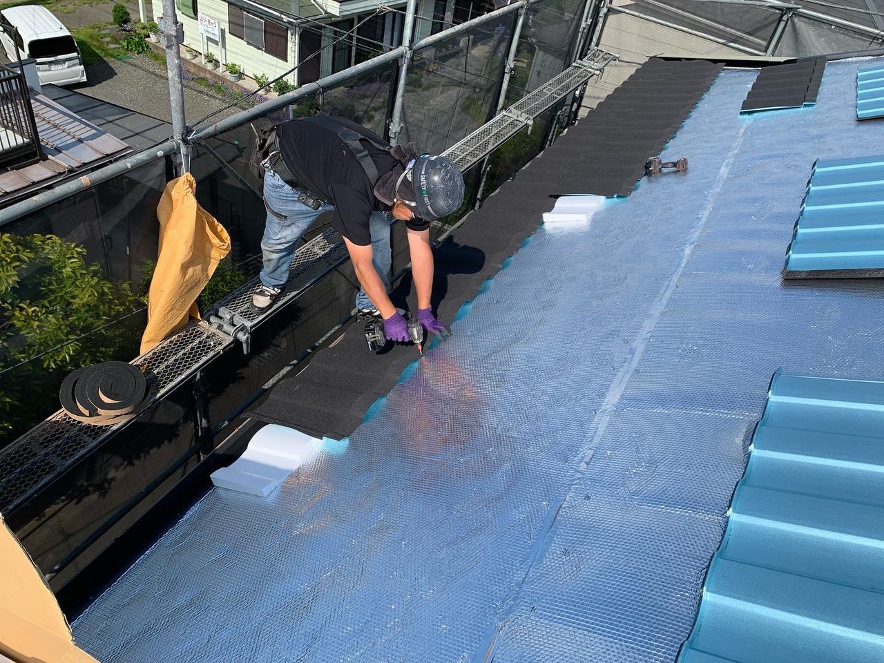屋根葺き替え工事の現場です。