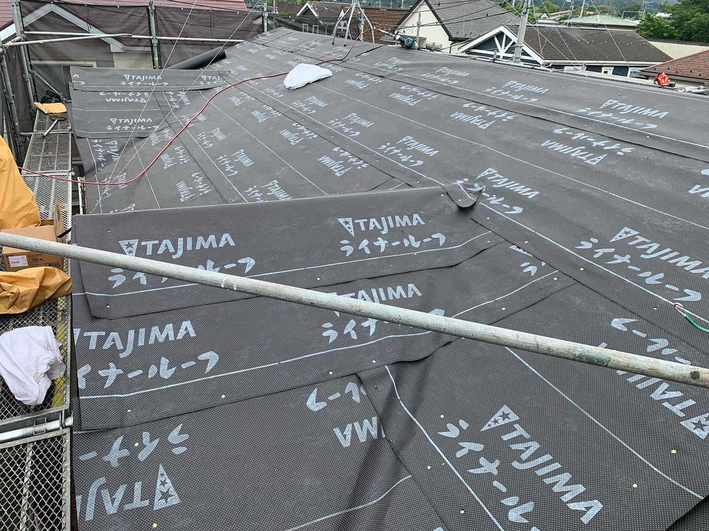 今日は、既存の太陽光パネルを慎重に外して、防水紙を貼りました。