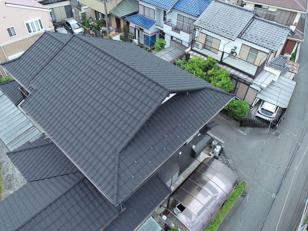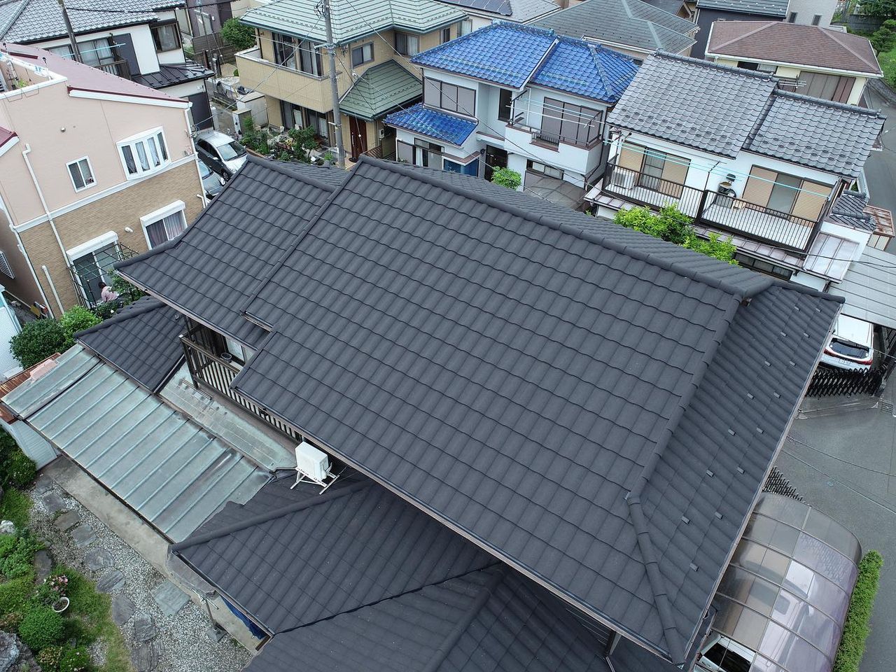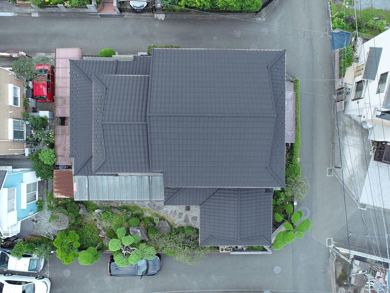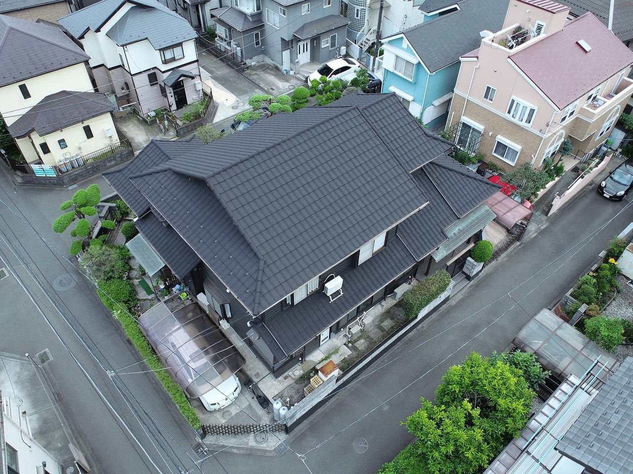 相模原市東橋本での屋根葺き替え完成ドローン写真です‼️