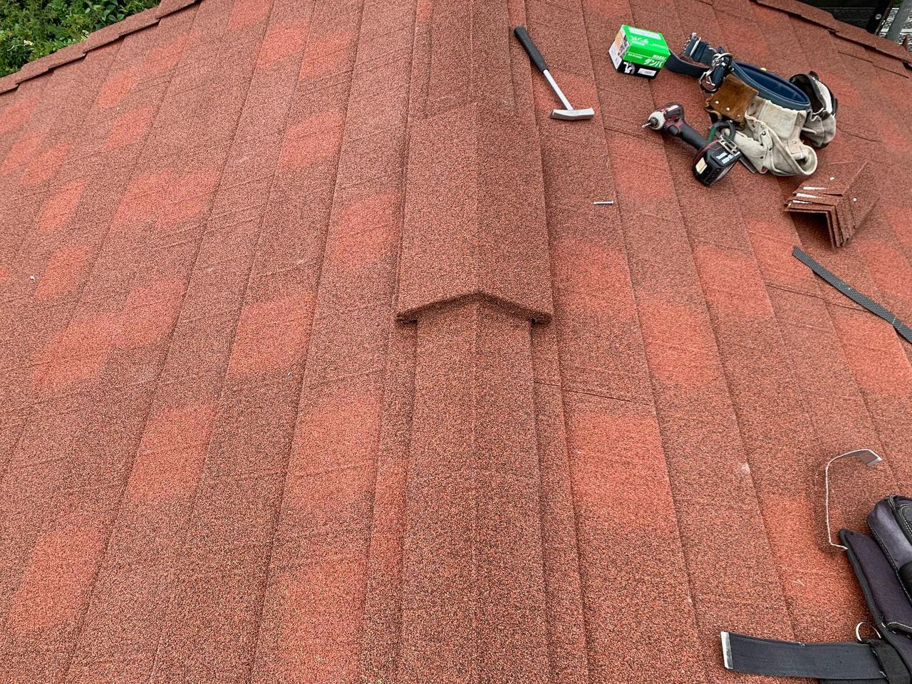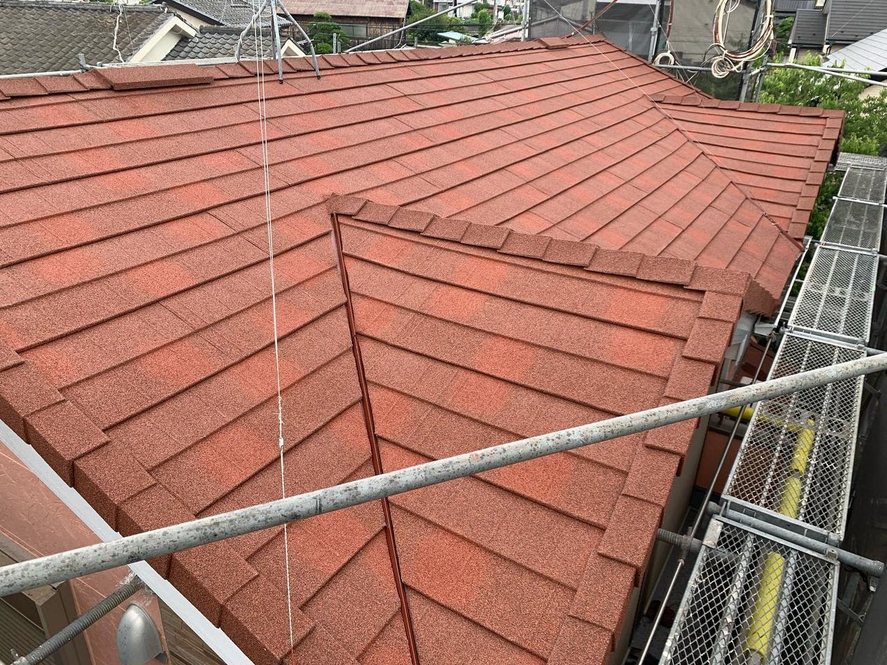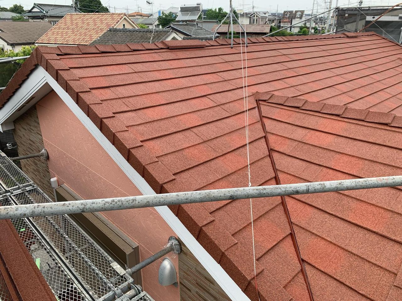 屋根葺き替え相模原市中央区田名にて屋根カバー工法&太陽光パネル脱着♪続き 2023.06.21 屋根カバー、太陽光パネル脱着工事の現場です。本日、大屋根の本体を葺きあげ、トリム、換気棟2箇所をつけ大屋根は完成しました!明日は下屋根の壁周りを仕上げていきます。ディーズルーフィング ディプロマットスターのテラコッタ色です! Post Share Line note 町田市つくし野にて屋根カバー工法 ローマン&ネロ♪前の記事 町田市つくし野にて屋根カバー工法♪続き次の記事