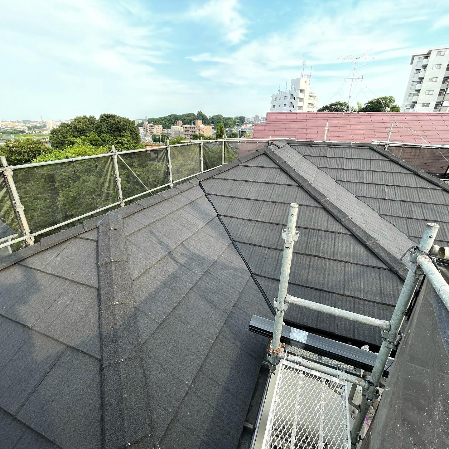 カバー工法今回は横浜市緑区新治町にて屋根カバー工法♪ 2023.07.01 横浜市緑区新治町にて屋根カバー工法を行なっています。 今日は大屋根のトリムと換気棟を付けて大屋根が良い仕上がりになりました。 明日も引き続き、下屋根の作業をしていきます。 Post Share Line note 町田市図師町にて屋根カバー工法♪前の記事 町田市でのゴーヤの成長を見守る!次の記事