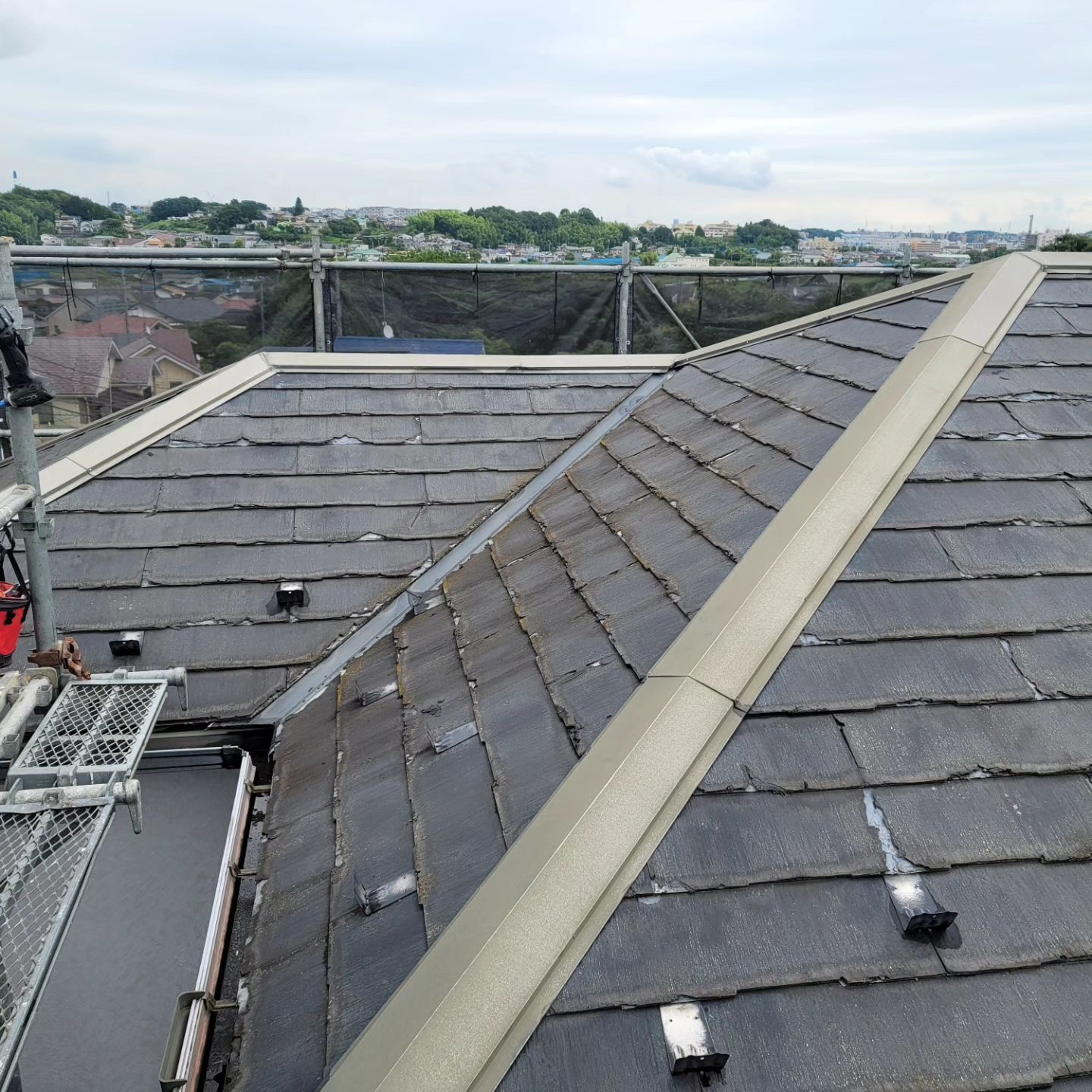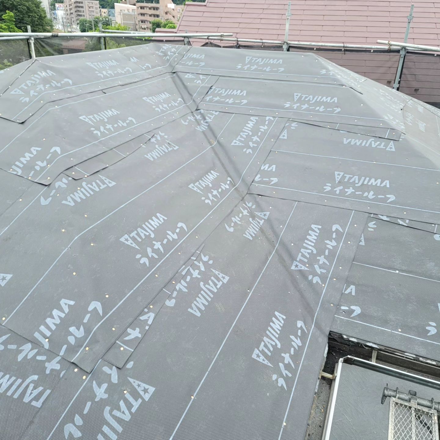 本日は既存の棟板金の解体などのあと、ルーフィングの増し張りを行いました。