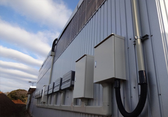 - 産業用(折半)50KW 倉庫壁面にパワーコンディショナ設置